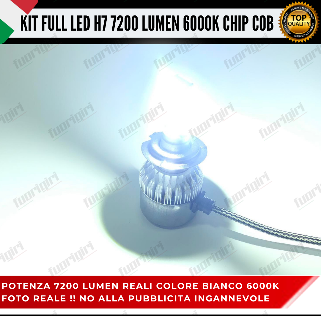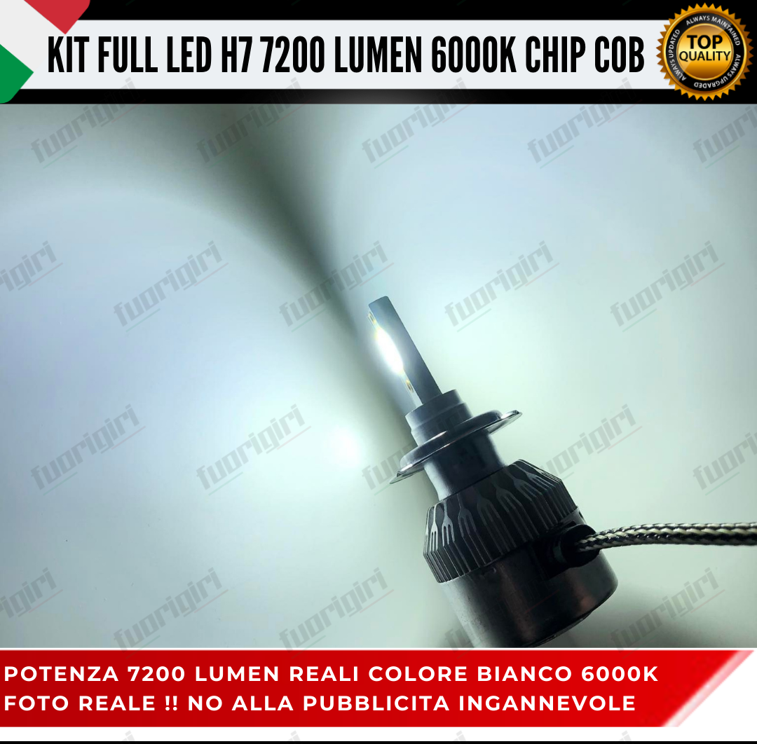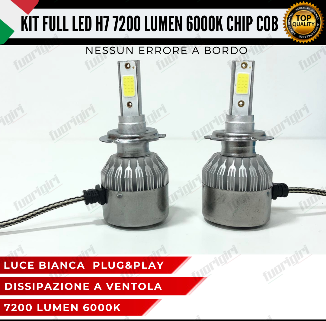 KIT FULL LED H7 CANBUS 7200 LUMEN REALI 6000K BIANCO NESSUN ERRORE AUTO