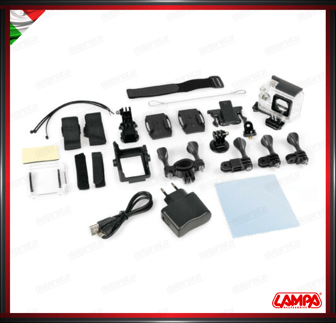 LAMPA ACTION CAM PLUS HD 1080 P KIT ACCESSORI TELECAMERA PER SPORT