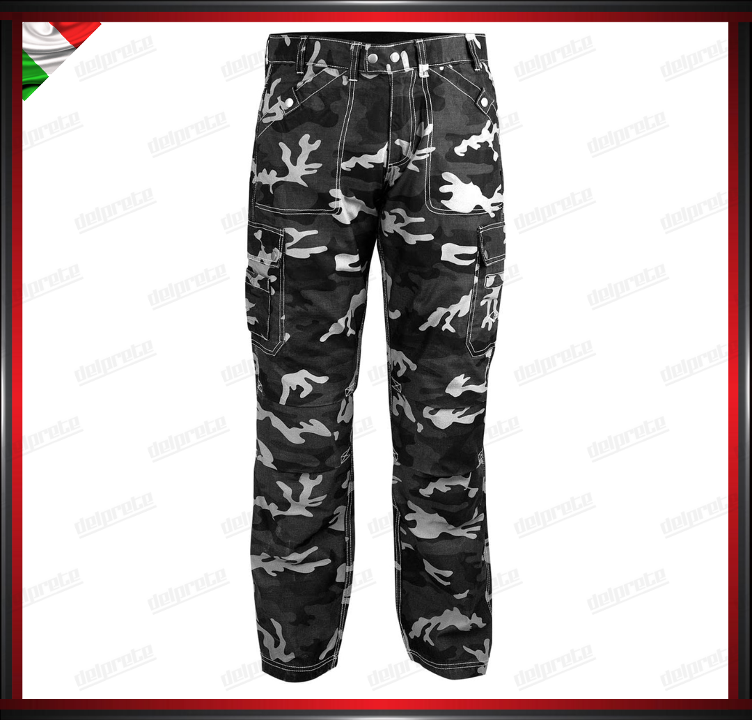 PANTALONE DI JEASN MOTO MIMETICO TATTICO CON PROTEZIONI OMOLOGATE CE TASCONI LATERALI