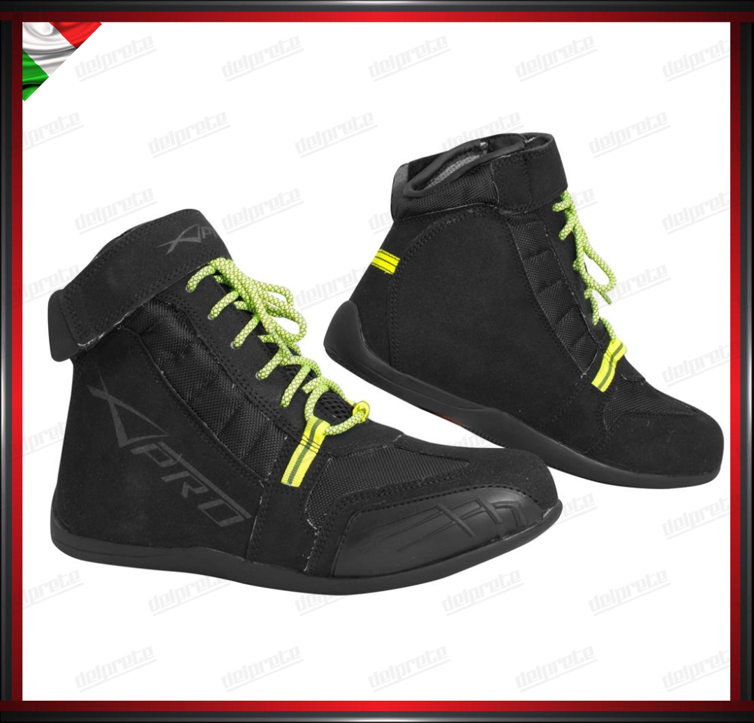 STIVALETTO BASSO MOTO IN TESSUTO CON LACCI FLUO IMPERMEABILE TRASPIRANTE OMOLOGATO CE