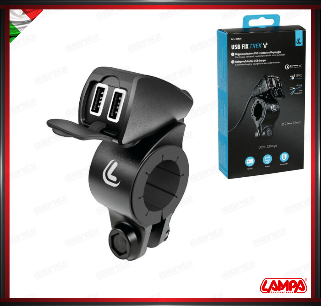 USB-FIX TREK LAMPA DOPPIO CARICATORE USB MOTO FISSAGGIO CON VITI RESISTENTE ALL'ACQUA - 5400 MA ULTRA FAST CHARGE
