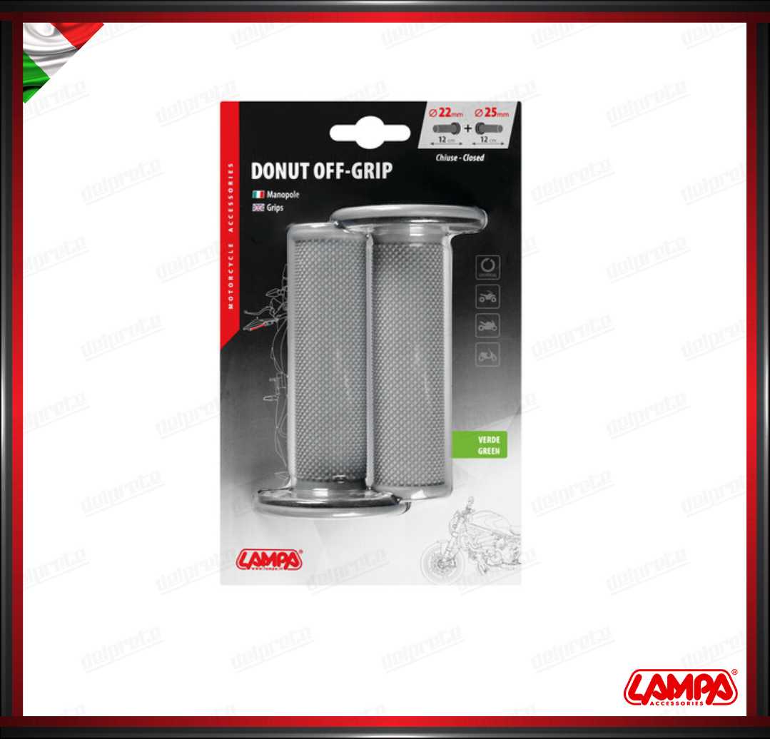 DONUT OFF-ROAD GRIPS MANOPOLE GRIGIO VERDE UNIVERSALI MOTO SCOOTER CROSS ADVENTURE