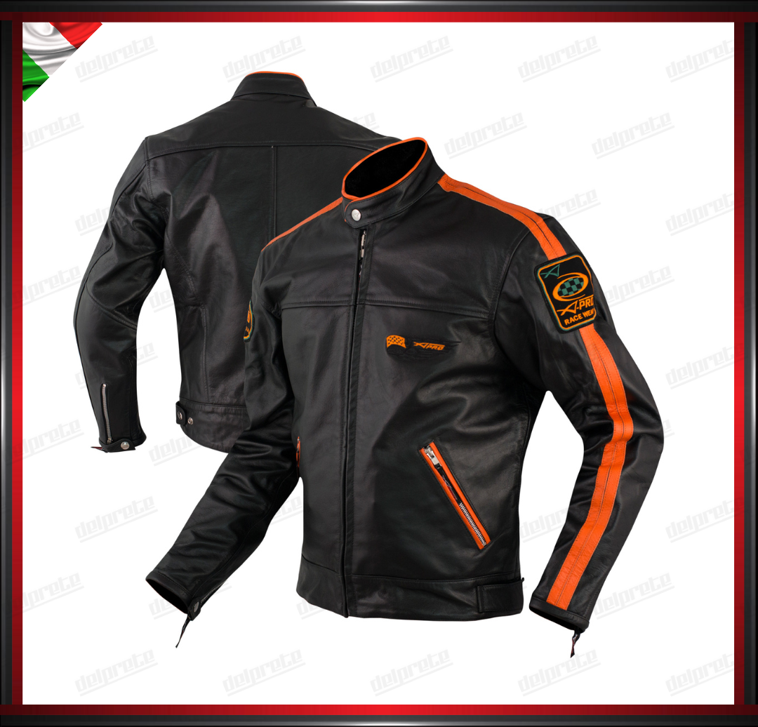 GIACCA IN VERA PELLE VINTAGE ARANCIONE CON RINFORZO SCHIENA PROTEZIONI OMOLOGATE