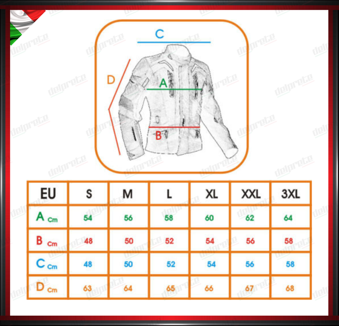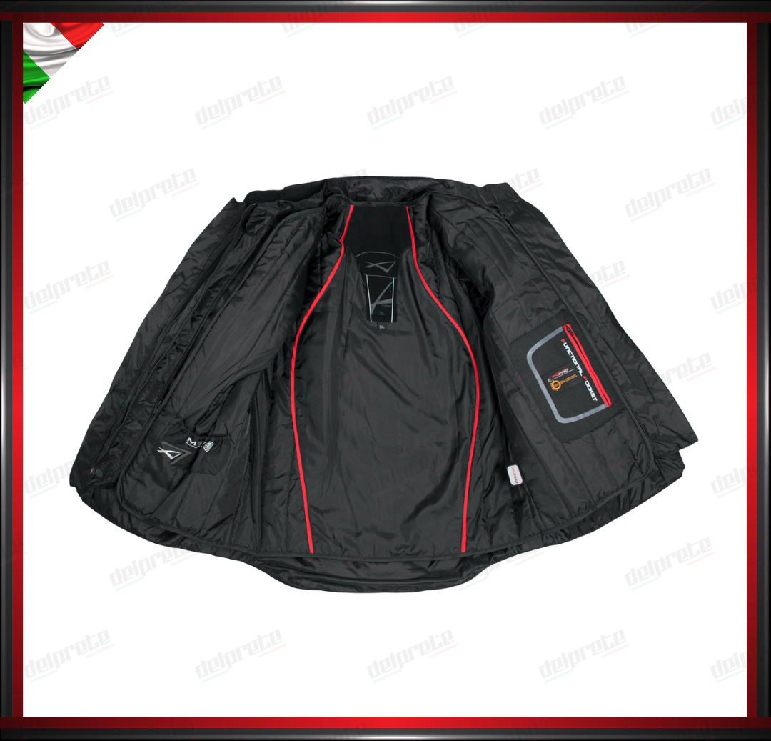 • PROTEZIONI: approvate CE su spalle e gomiti, tasca per inserimento rinforzo schiena.