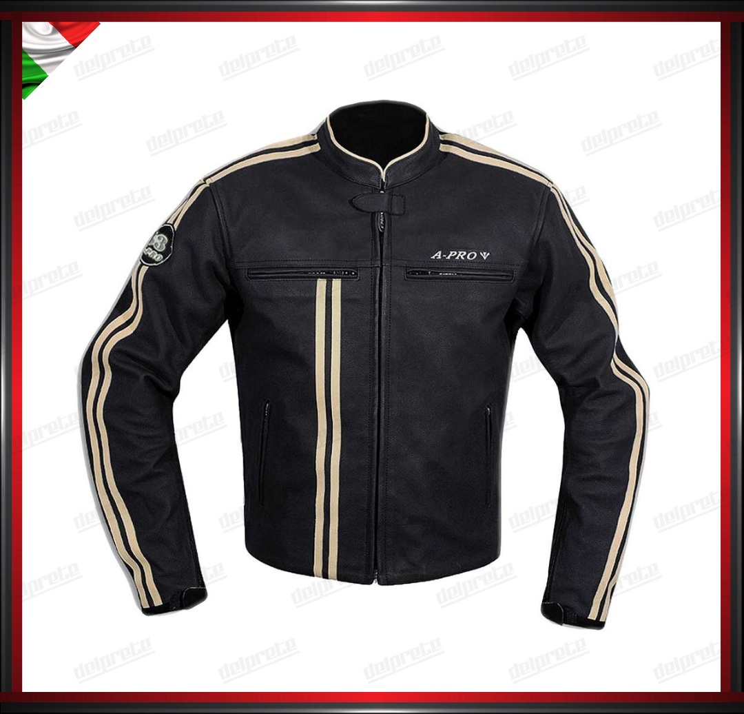 GIACCA MOTO IN PELLE PIENO FIORE PROTEZIONI OMOLOGATE BIANCO VINTAGE RETRO