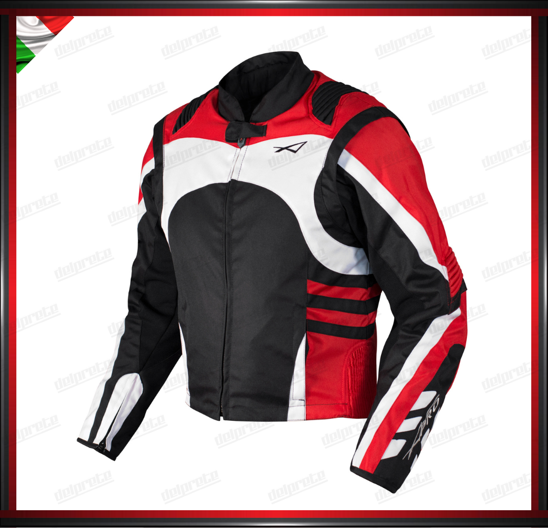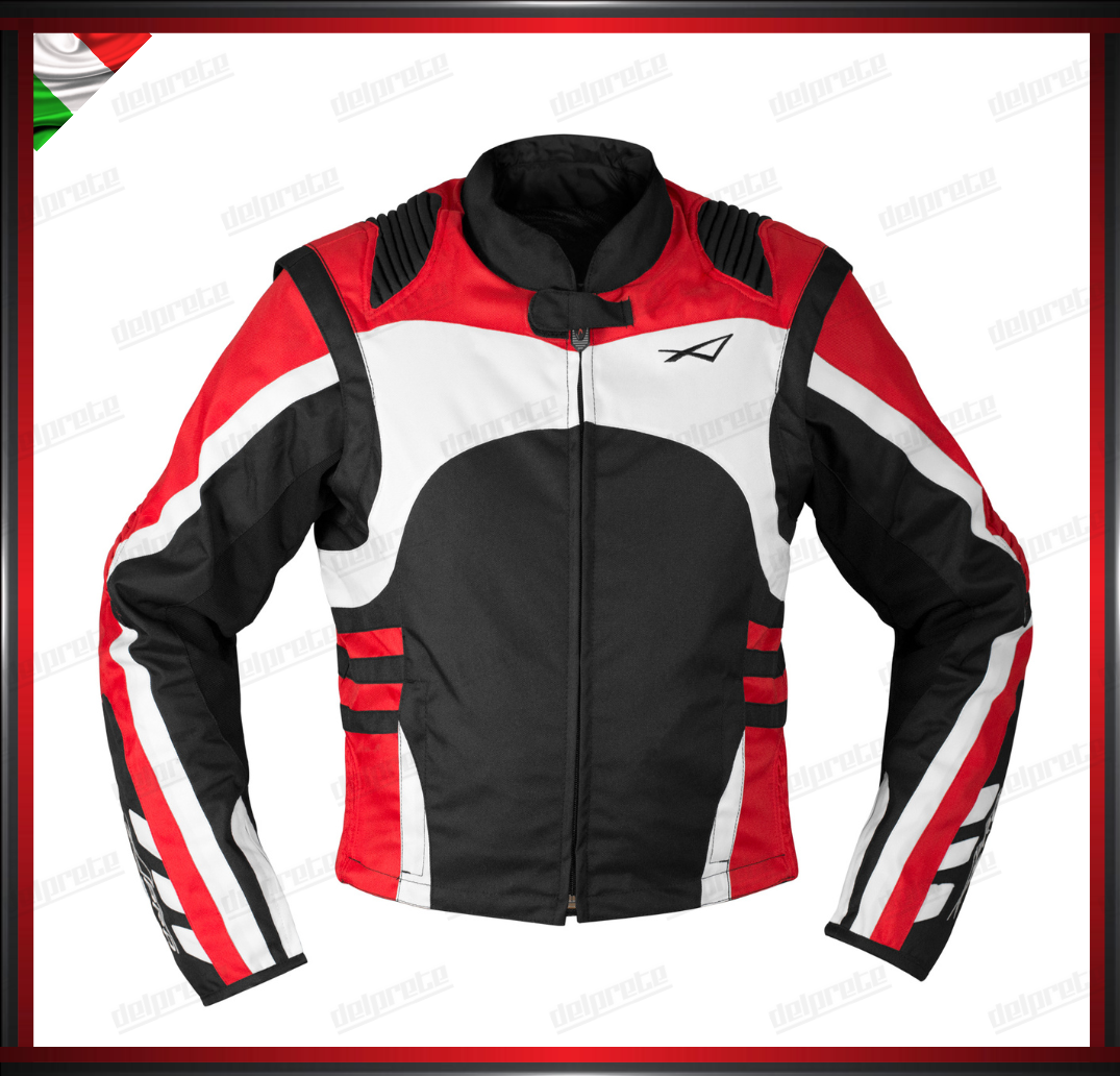 GIACCA MOTO IN TESSUTO ROSSO CORDURA MANICA STACCABILE PROTEZIONI OMOLOGATE CE