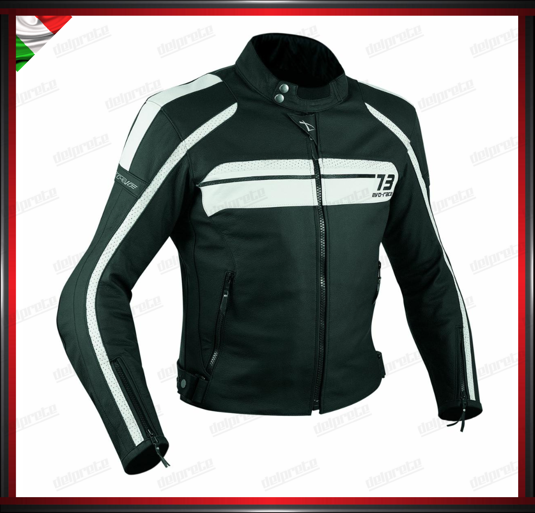 GIACCA MOTO IN VERA PELLE SPORT CON PROTEZIONI OMOLOGATE RINFORZO SCHIENA BIANCO