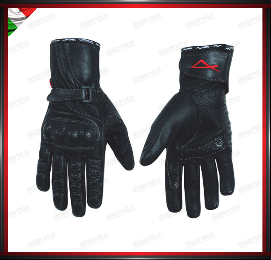 GUANTI MOTO IN PELLE SPORT NERO PROTEZIONE NOCCHE CINTURINO IN VELCRO