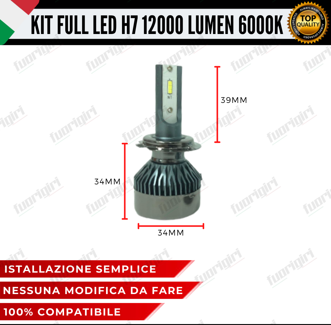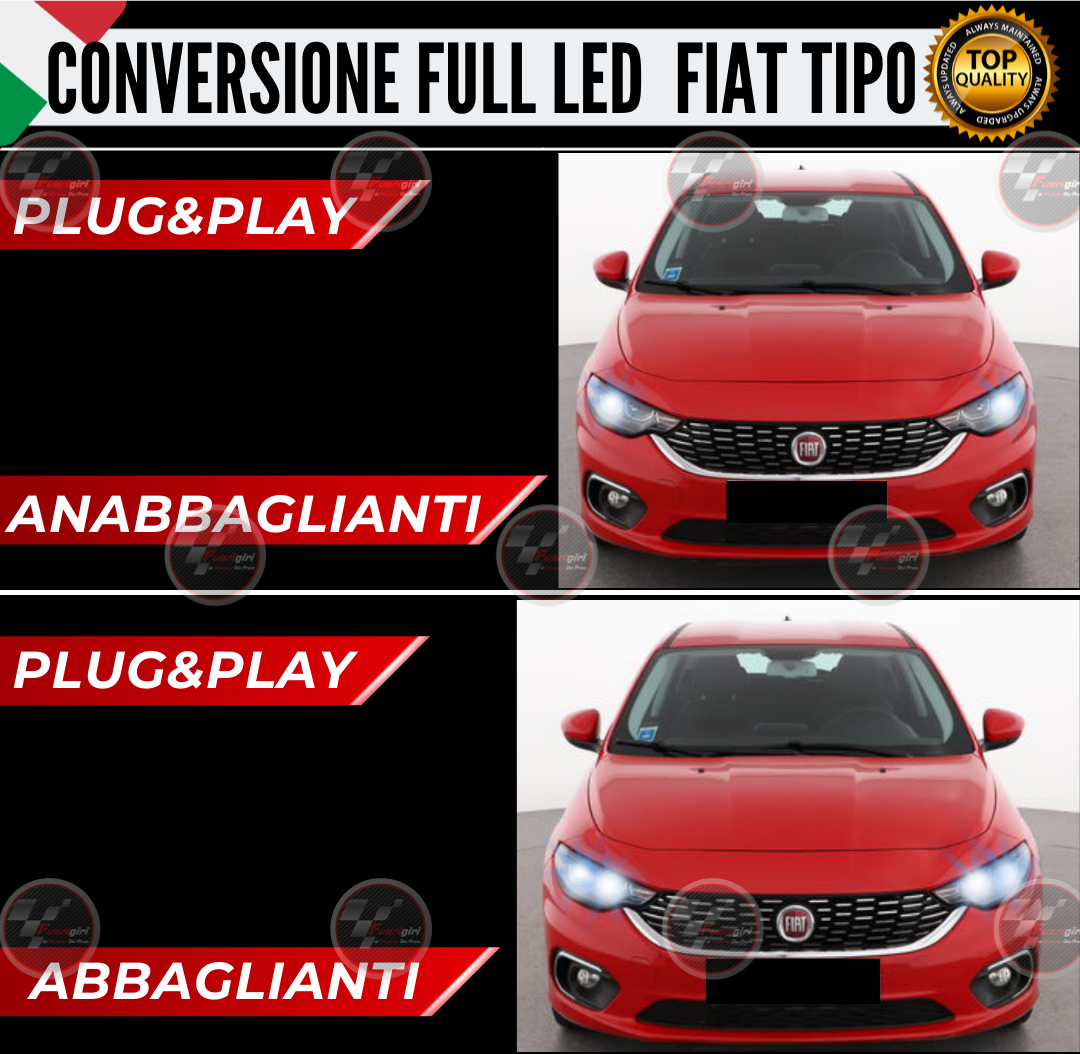 KIT FULL LED FIAT TIPO 12000 LUMEN H7 6000K BIANCO ANABBAGLIANTI + ABBAGLIANTI