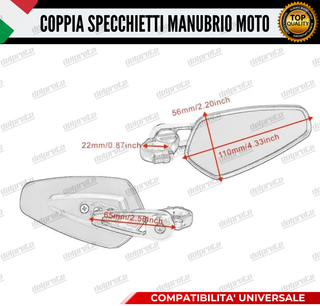 COPPIA SPECCHIETTI MOTO E SCOOTER. CAMBIARE LOOK ALLA TUA MOTO NON E STATO MAI COSI SEMPLICE! COSI CHE LA TUA MOTO SARA' PIU SPORTIVA CON UN TOCCO DI PERSONALITA' ED ELEGANZA SENZA COSTOSE MODIFICHE, INFATTI GLI SPECCHIETTI SONO SEMPLICISSIMI DA ISTALLARE. E POSSIBILE RAGOLARE GLI SPECCHIETTI A VOSTRO PIACIMENTO.